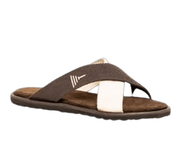 Stylish and breathable fabric slippers with a brown and cream cross-strap design—lightweight comfort for everyday wear.
